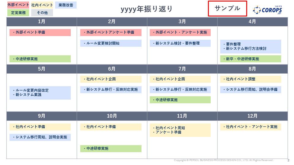 月次版は、1年分の出来事を「月ごと」に区切って整理するためのフォーマットです。