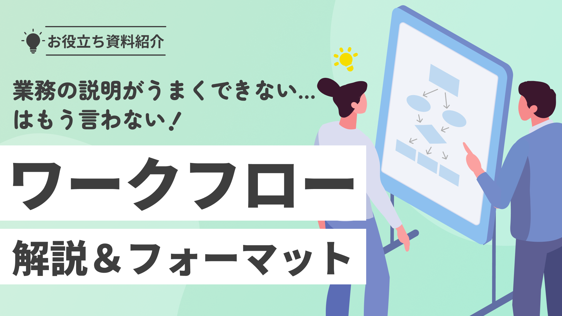 業務の全体像を整理し、流れを可視化することで、説明する側は伝えやすく、受け手は理解しやすくなります。ワークフローの作成のコツを動画で解説し、フォーマットも付いているのですぐに作成できます。 |